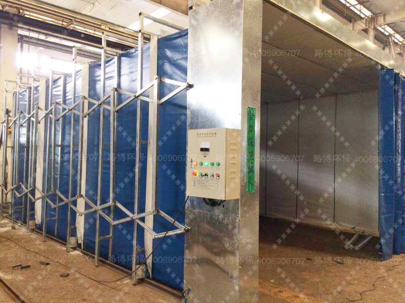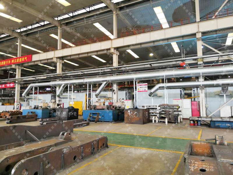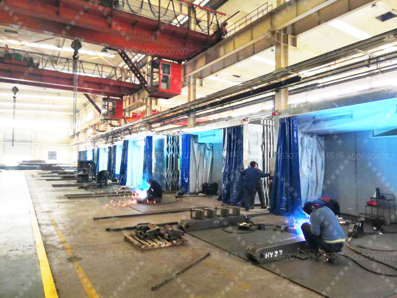 近几年,机械制造行业在市场需求的推动下整体保持持续增长态势,西安某知名煤矿机械有限公司是以机械制造加工为主的综合性煤矿机械企业,烟气粉尘的主要来源于车间焊接烟气粉尘的车间排放,车间需除尘区域共1跨5柱距(柱距9米)内且烟气粉尘量较大,青岛路博环保结合用户现场工况及需求将除尘区域设计划分为7个工位,每个工位单独采用一套伸缩房(7m*5m*3m)机构对烟尘进行收集。